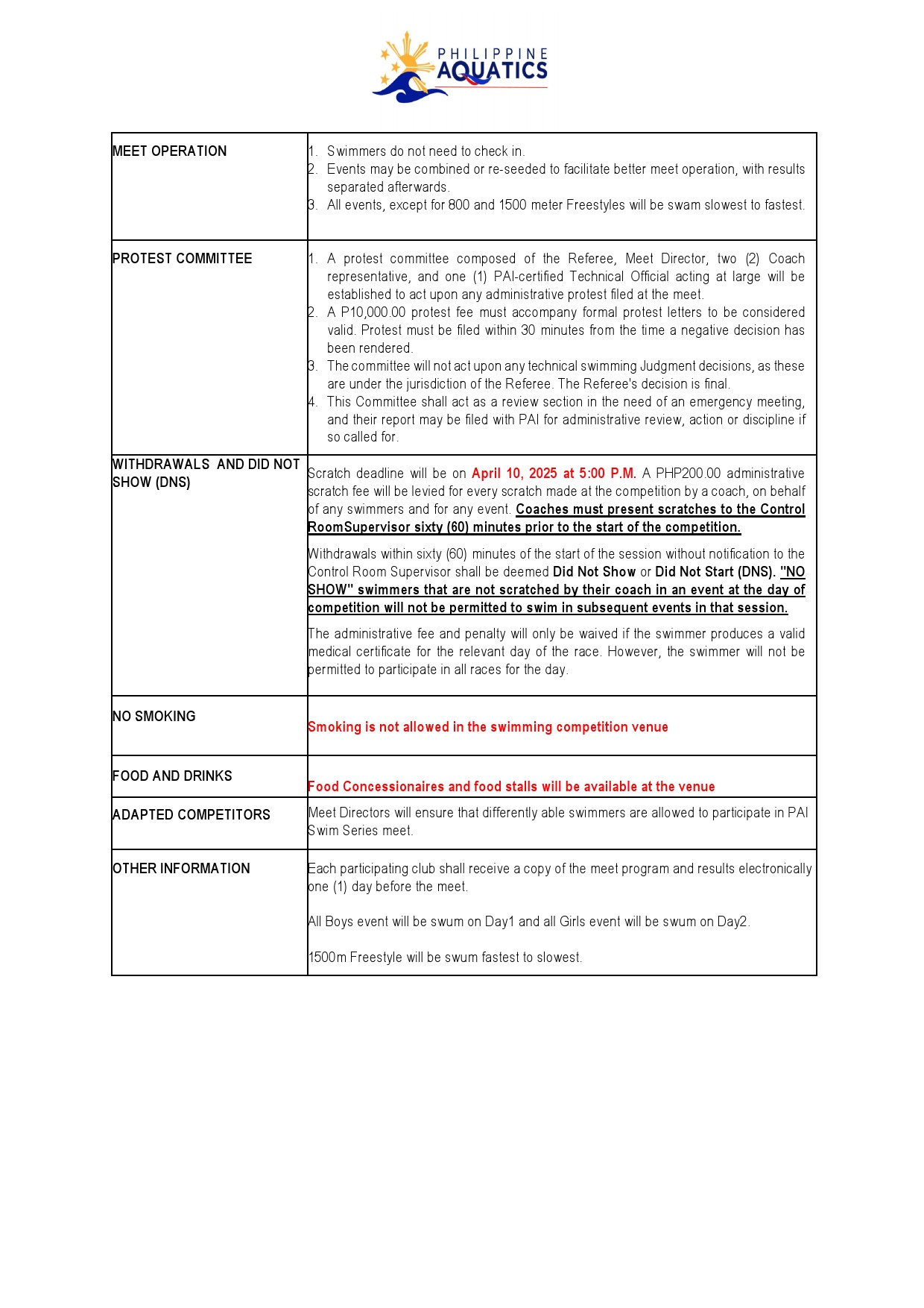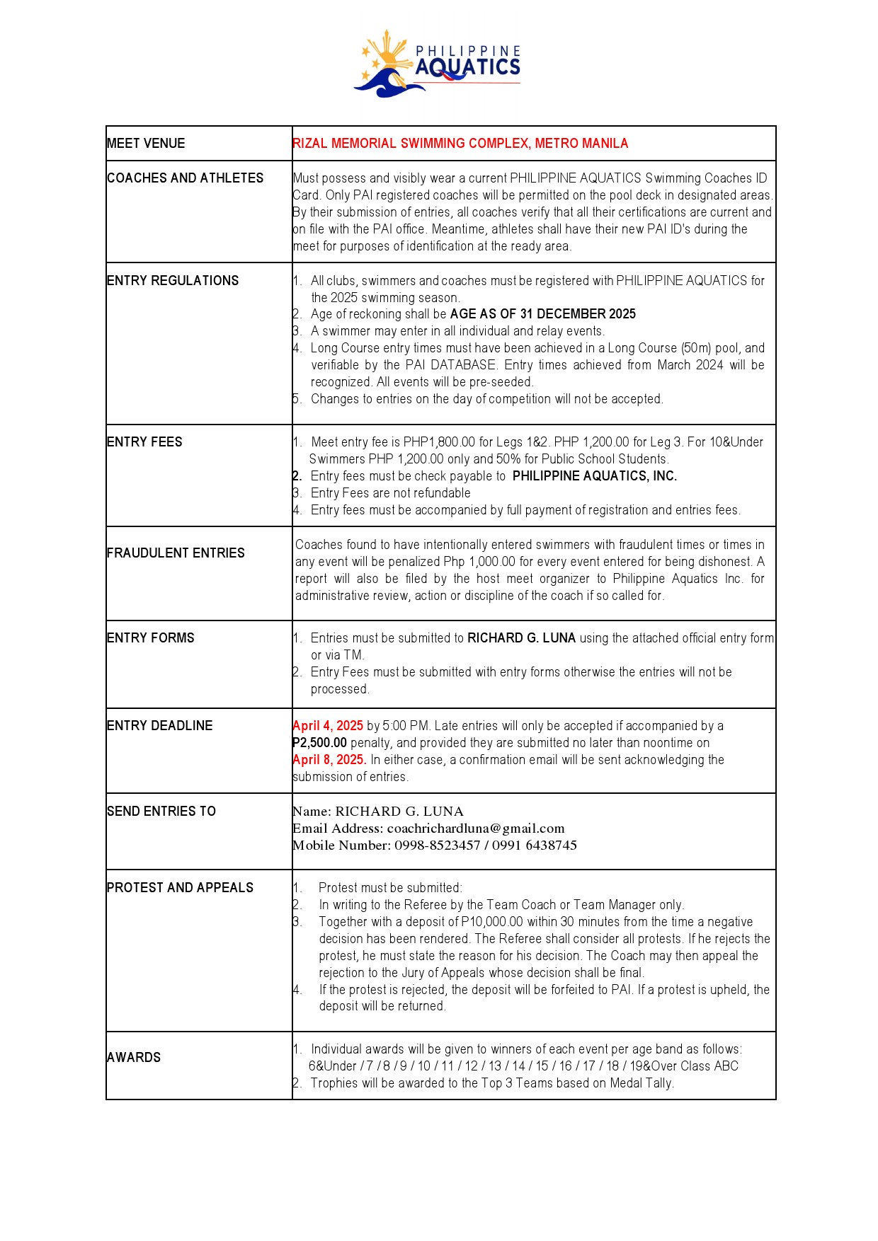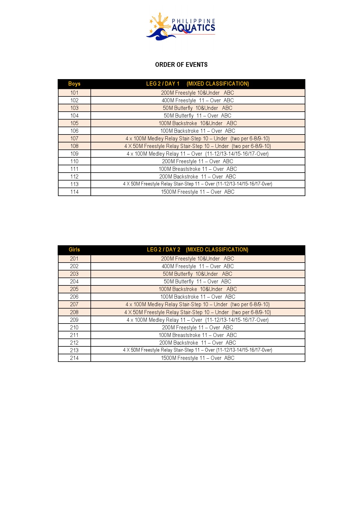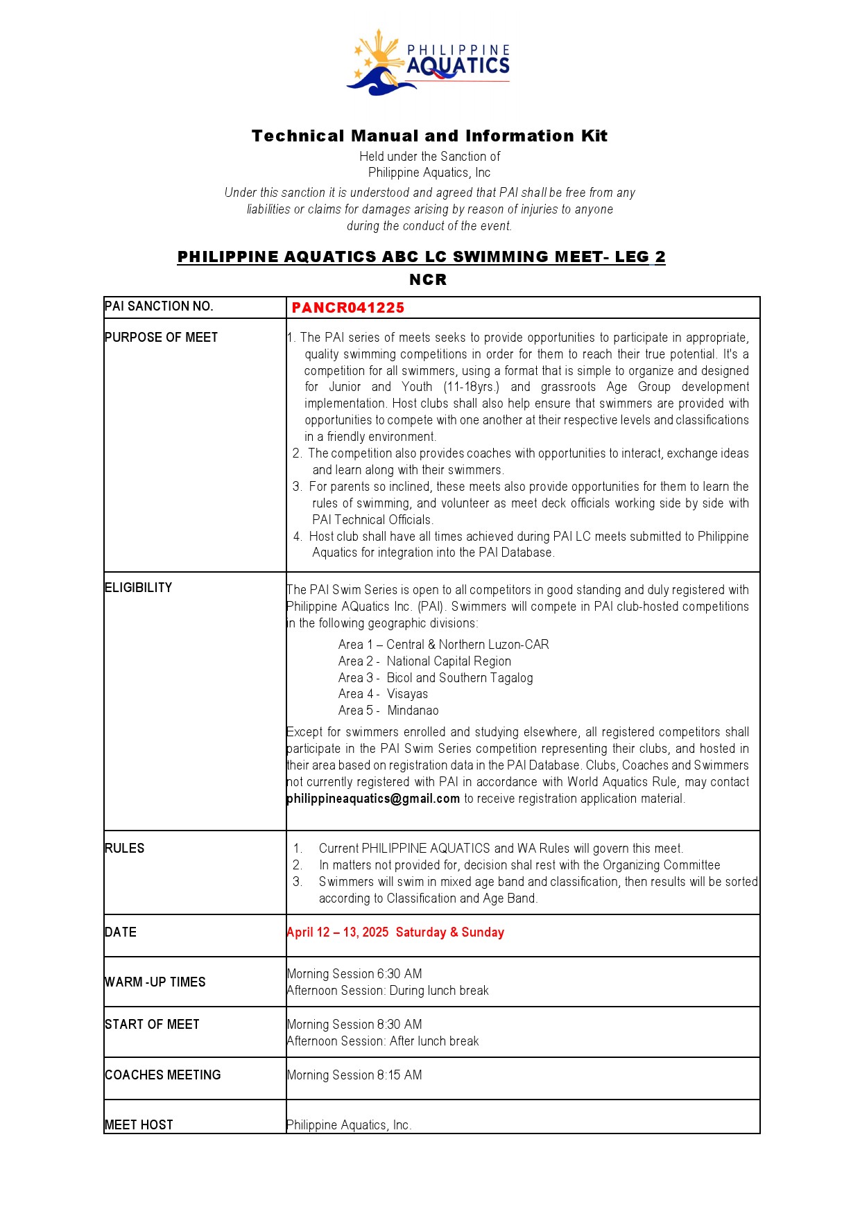 PAI LEG 2 LC Swimming Meet 2025